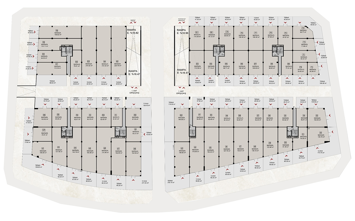 · Ferah Tasarım: Modern ve nefes alan yapıya sahip mağaza mimarisiyle ferah ve fonksiyonel ticari alanlar sunuyor.